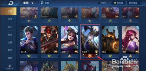 点击英雄选项按钮,再在里面找到需要查看的英雄。