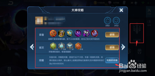 再点击介绍里的进阶信息,可以看到大神攻略,里面有相关的装备和铭文的保举。