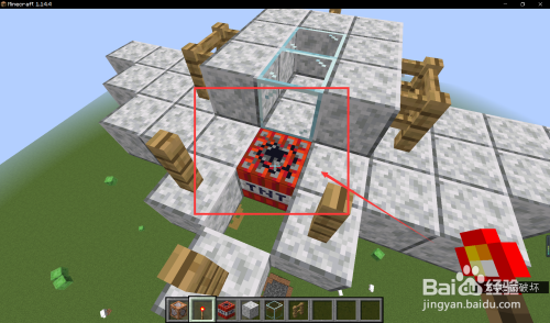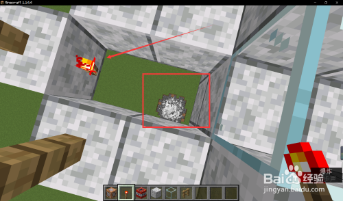 最后,我们将红石火炬防止在炸弹的旁边,即可点燃炸弹,最终的轰炸结果如下图所示。