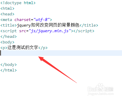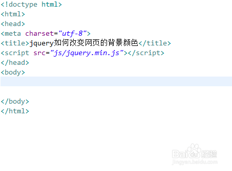 在编纂器新建一个index.html文件,用于讲解jquery若何改变网页的布景颜色。