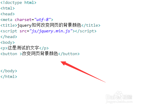 在index.html文件内,利用button标签建立按钮,按钮名称为“改变网页布景颜色”。