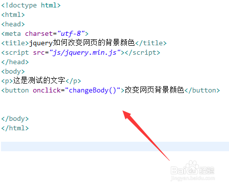 在index.html文件内,给button按钮添加onclick点击事务,当按钮被点击时,执行changeBody()函数。