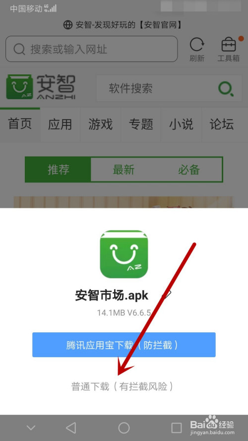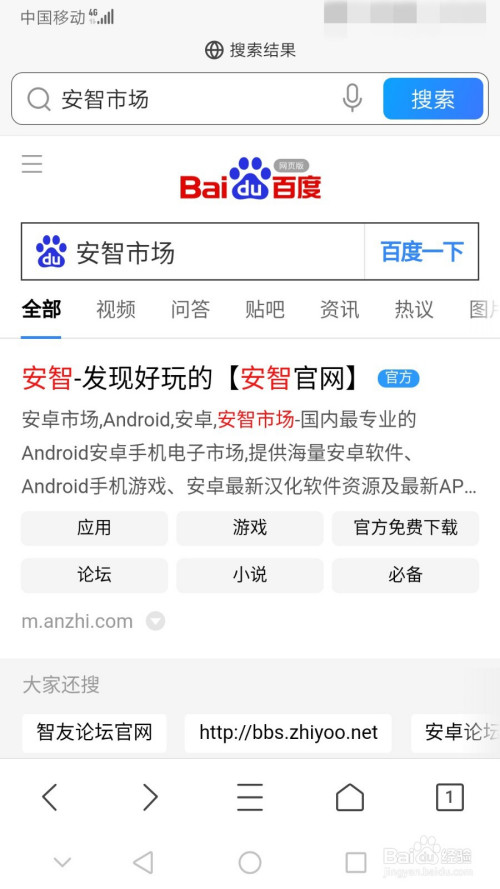 打开手机上的浏览器搜刮‘安智市场’,然后进入官方网址,选择通俗下载。