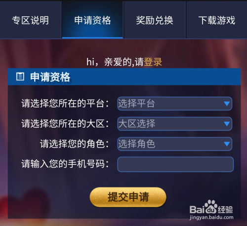 先登岸把下面一些需要的信息填写好,然后提交申请,申请当作功后,就有了体验服的资格。