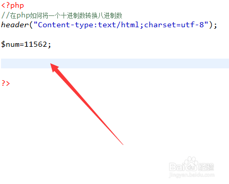 在test.php文件中,将一个十进制数,如11562,保留在变量$num中。