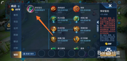 选择学识宝石,点击采办。采办这个装备后,不吃队友击杀小兵和野怪的经验。