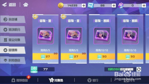 6、同样在回首商城中我们可以兑换信物碎片,碎片可以合当作或进级参赛者。