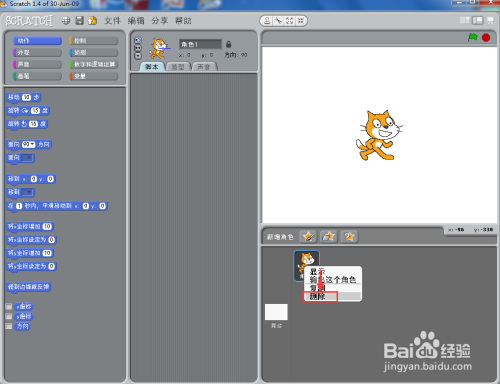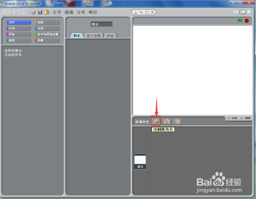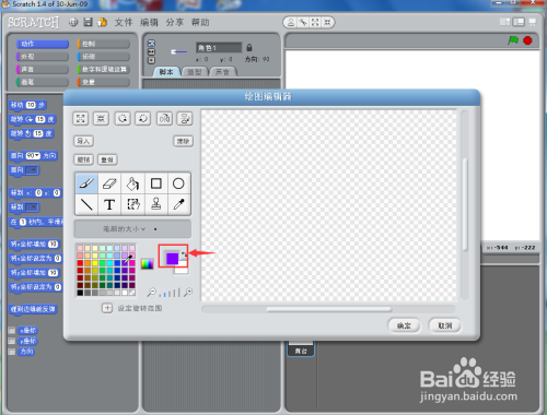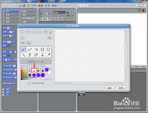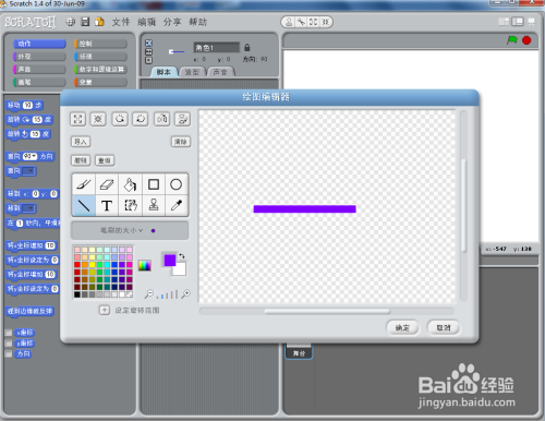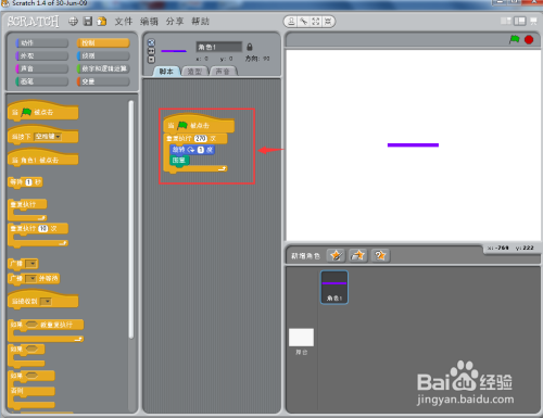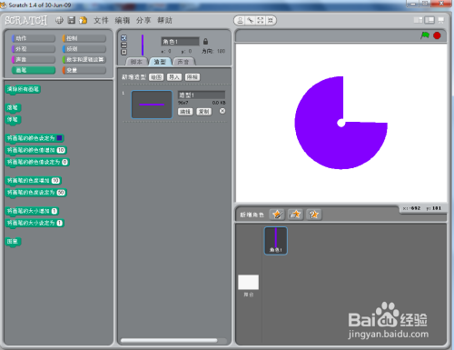 点击绿旗执行程序,我们就画好了一个紫色四分之三圆形。