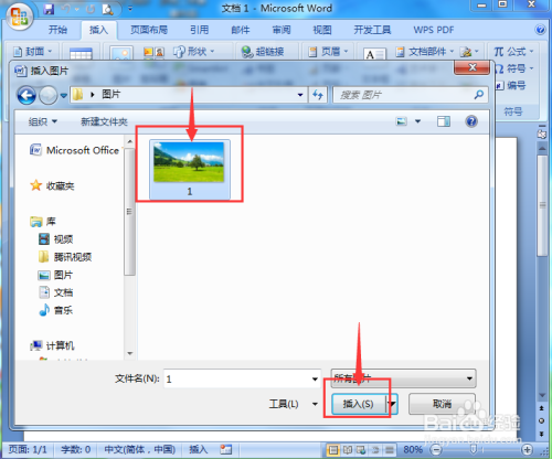 END1、打开word,点击插入,选择图片,插入一张图片;