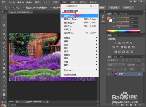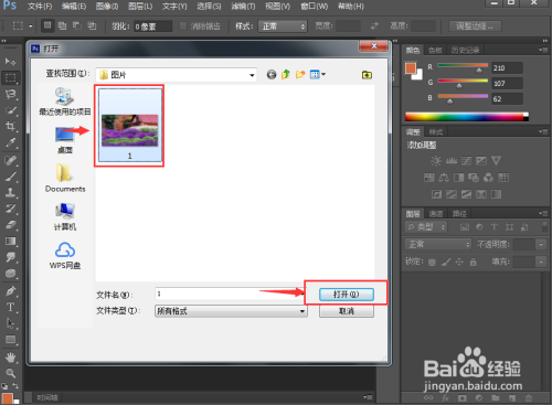 按ctrl+O,在打开窗口选中要处置的图片,点击打开;