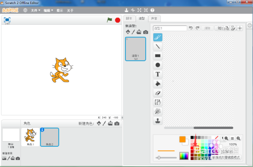 打开scratch2.0软件,进入它的本家儿界面中;
