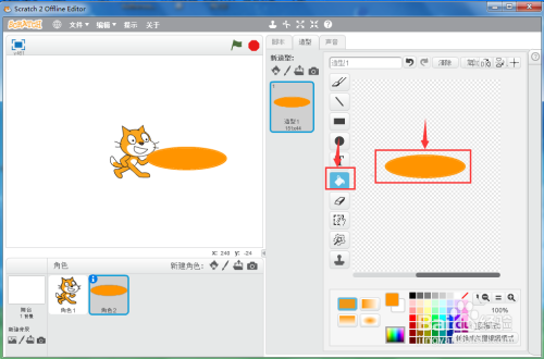 点击用颜色填充,在椭圆内部单击鼠标左键,给它填充上橙色;
