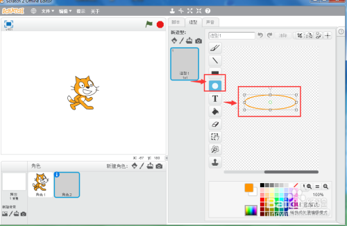 2、点击绘制新脚色,画一个红色椭圆;