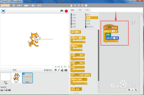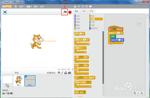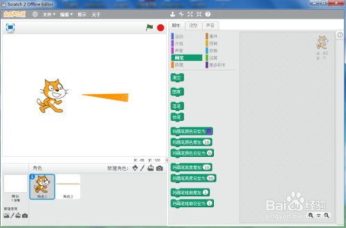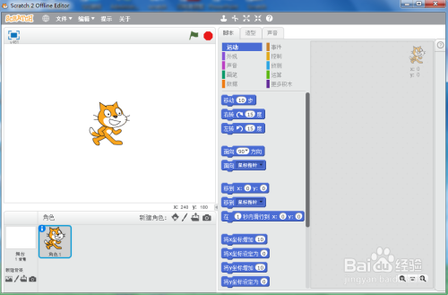 1、打开scratch2.0,进入其本家儿界面;
