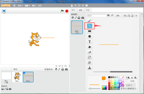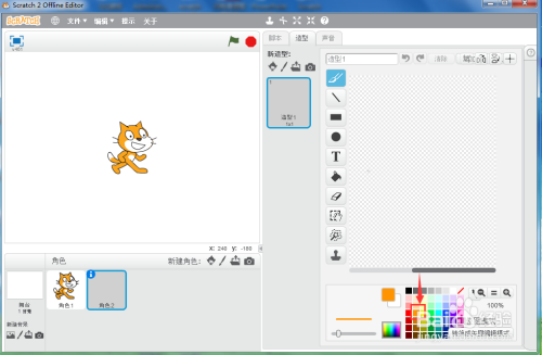 打开scratch2.0,进入其本家儿界面;