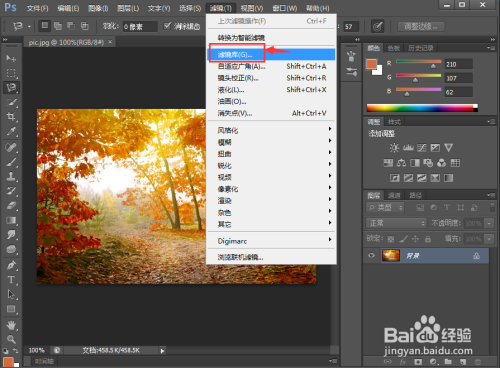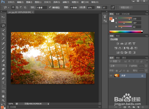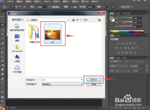 按组合键ctrl+O,在打开窗口选中要处置的图片,点击打开;