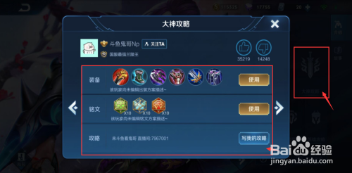 再点击介绍里的进阶信息,可以看到大神攻略,里面有相关的装备和铭文的保举。
