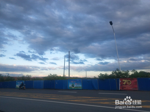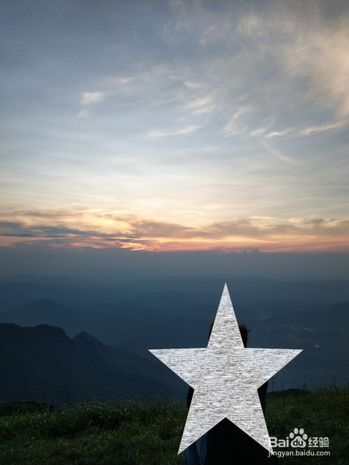 爬上山顶后,正好赶上日落的晚霞。蓝色天空中的一抹橙色,像是有人画了一笔上去一样