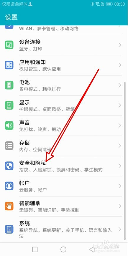 然后再打开的平安,可以在页面点击锁屏和暗码的菜单项。