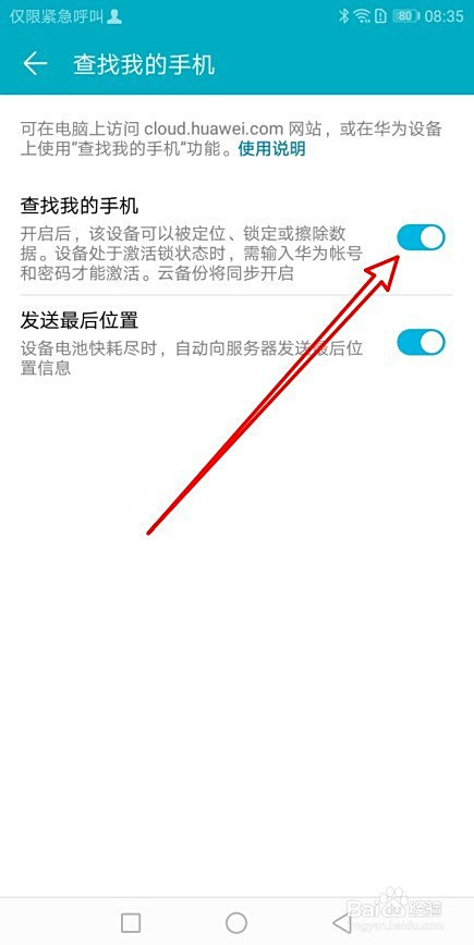 在打开的查找我的手机的详情页面,找到查找我的手机的设置项。