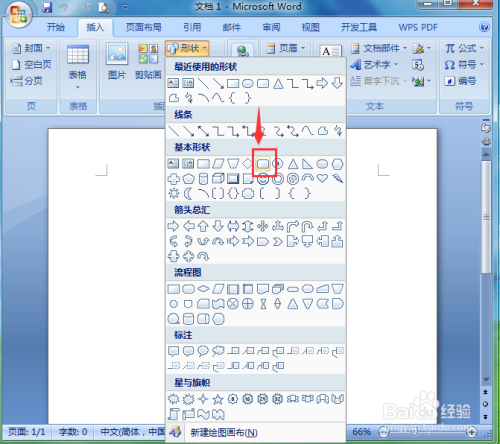 2、在根基外形中点击圆角矩形;