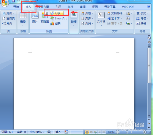 END1、打开word,点击插入,选择外形东西;