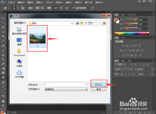 按ctrl+O,在打开窗口选中要处置的图片,点击打开;