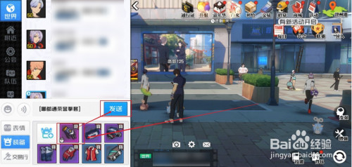 3.点击装备按钮,选择一个装备,点击发送按钮。