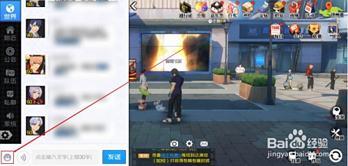 我们在对话框中,可以选择一个频道,宿世界频道和私聊频道期待。然后点击笑脸脸色按钮。