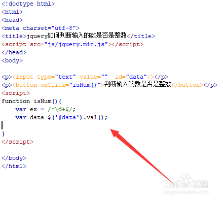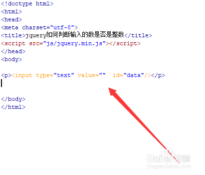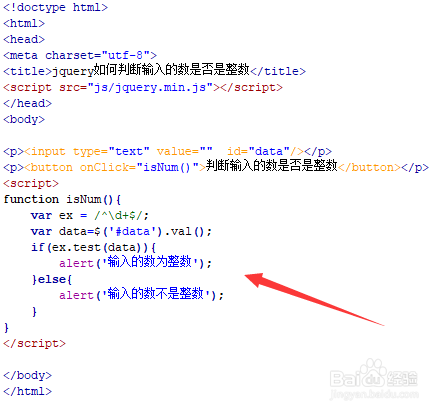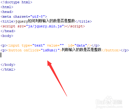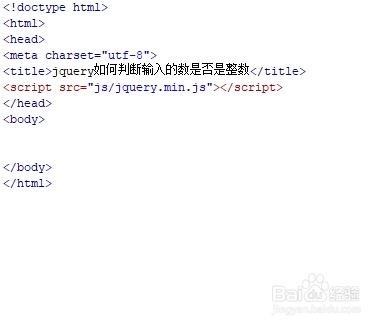 新建一个html文件,定名为test.html,用于讲解jquery若何判定输入的数是否是整数。