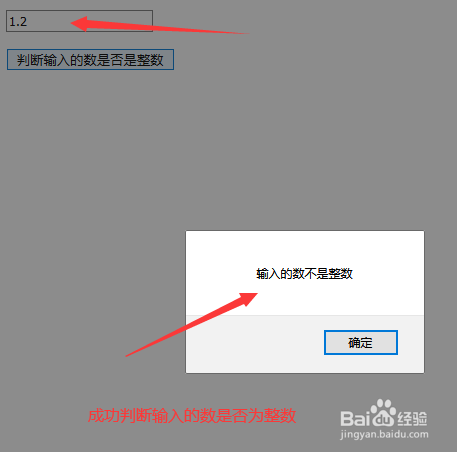 3、在js中,再利用test()方式,操纵正则表达式判定输入的数字是否为整数,再利用if语句判定成果,并提醒分歧的内容。