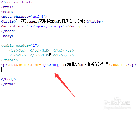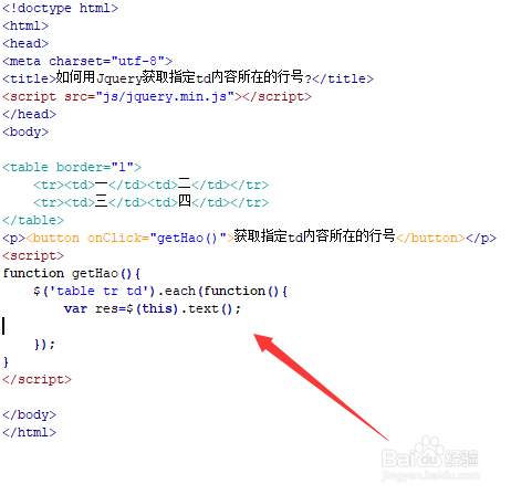 在js标签中,建立getHao()函数,在函数内,利用each()方式遍历每一个td对象,经由过程text()方式获得td的内容。