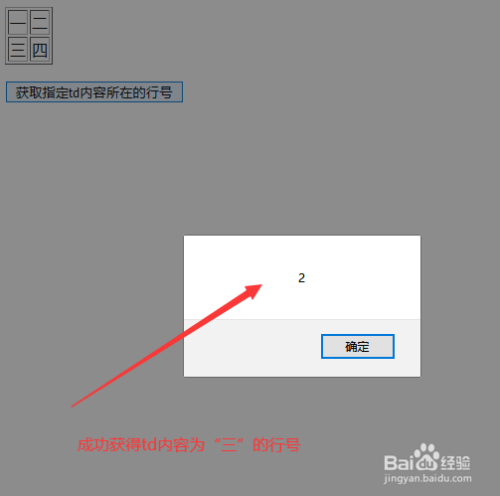 在函数内,再利用if语句判定td的内容是否为“三”,若是是,则获适当前的td对象,并利用parents()方式获得行对象,再经由过程index()方式获适当前行号,并利用alert()方式输出。