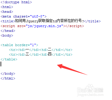 新建一个html文件,定名为test.html,用于讲解若何用Jquery获取指定td内容地点的行号。