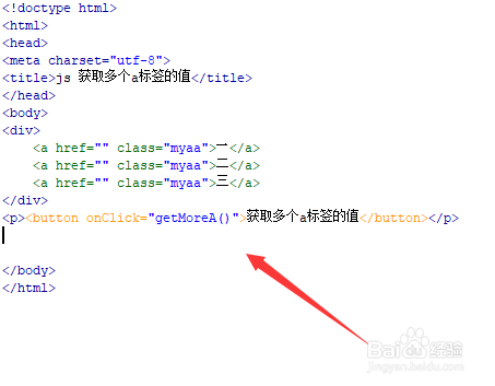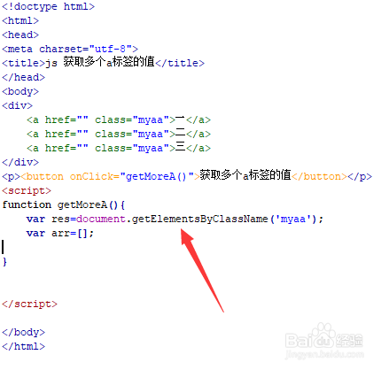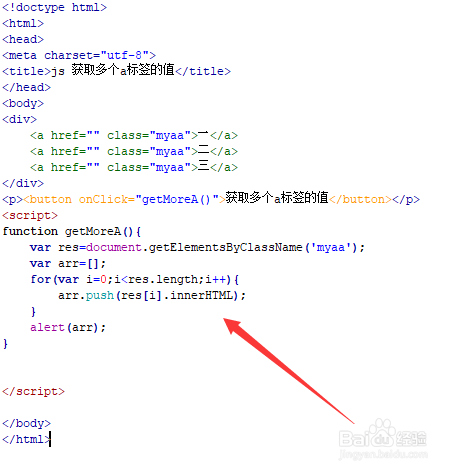 在js标签中,建立getMoreA()函数,在函数内,经由过程class获得a标签对象的调集,并初始化一个空数组arr,用于保留读取的值。