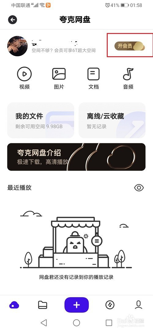 第三步进去夸克网盘界面之后,点击开会员,如下图所示: