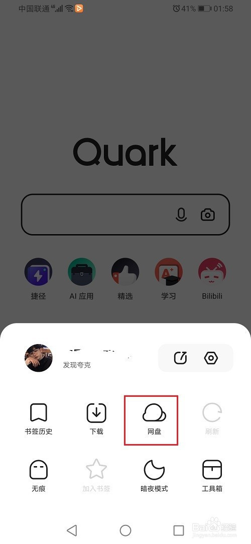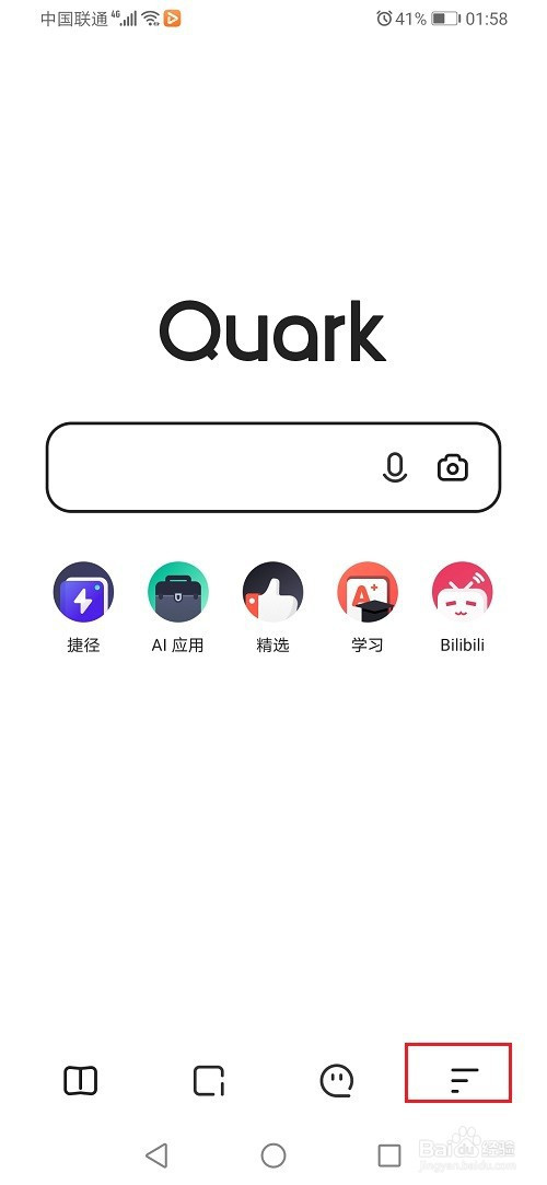 第一步打开夸克,点击右下方的列表图标,如下图所示: