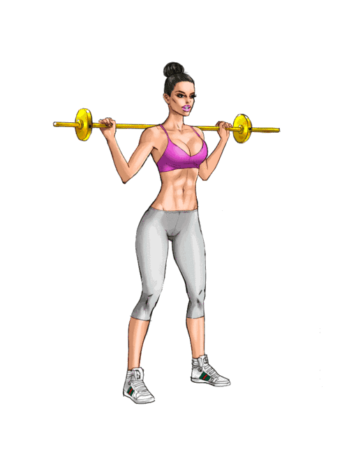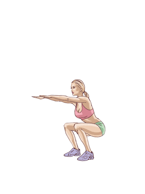 动作五 双脚分隔与肩同宽,站直,双手各持杠铃的一端(也可双手捧首),连结背部挺直,收紧腹部,然后双腿屈膝标的目的下深蹲,同时使上身稍稍标的目的前倾,然后再慢慢恢复站姿。此动作频频进行30次。注重,下蹲时,下盖不成跨越脚尖。
