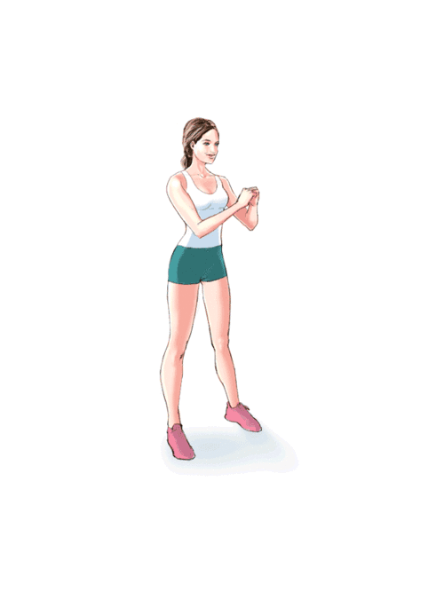 动作三 双脚分隔与肩同宽,站直,双臂曲肘,两手相握放于身前,连结背部挺直,收紧腹部,然后将左脚稍稍标的目的左侧迈一步,同时左腿屈膝标的目的下蹲,右腿连结伸直状况,且上半身稍稍标的目的左压低;再恢复初始状况,然后右腿稍稍标的目的右侧迈一步,同时右腿屈膝标的目的下蹲,左腿连结伸直状况,且上半身稍稍标的目的右侧压低。此动作频频进行30次。
