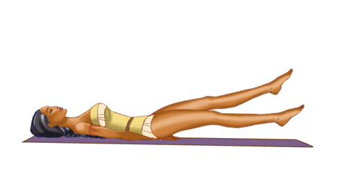 动作四 平躺在瑜伽垫上,双臂伸直平放在瑜伽垫上,双腿并拢伸直稍稍抬离地面,绷直脚尖,连结背部挺直,收紧腹部,然后使双脚瓜代做举高、放低的动作。此动作频频进行30次。注重,动作进行过程中,要始终连结背部挺直,并收紧腹部,同时双脚始终连结离地状况。