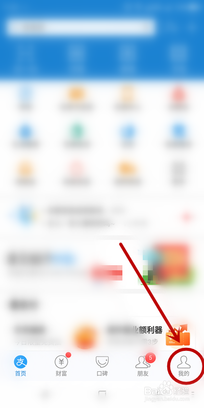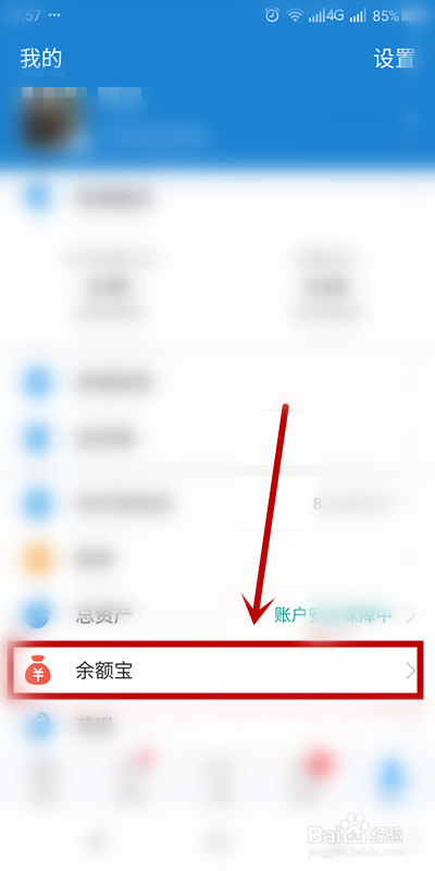 3、进入【我的】页面,在页面右上角找到【余额宝】选项单击