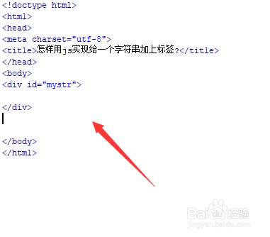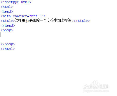 新建一个html文件,定名为test.html,用于讲解如何用js实现给一个字符串加上标签。