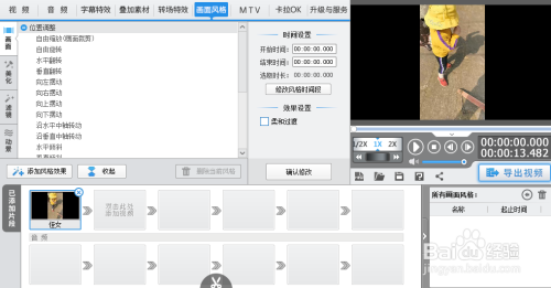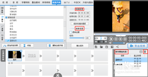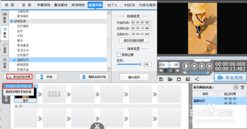 可觉得视频添加多个画面气概结果,在右下方的所有画面气概栏,可以看到添加的所有画面气概;鼠标左键点击某一画面气概,可以对该气概进行时候设置、结果设置,或者是删除。