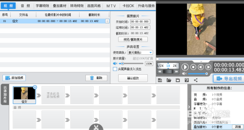 点击添加视频,选摘要添加的视频,点击打开,会弹出“预览/截取”的提醒框,点击确定,会看到视频被当作功添加到了列表中。