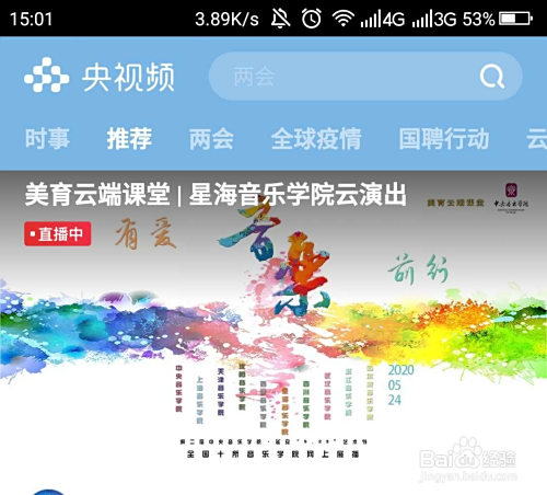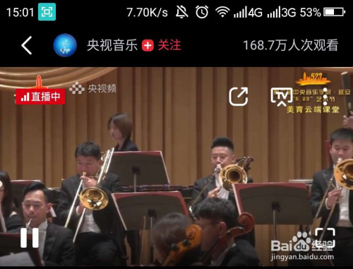 在弹出的对话框里面,显示【直播中】不雅看音乐直播。