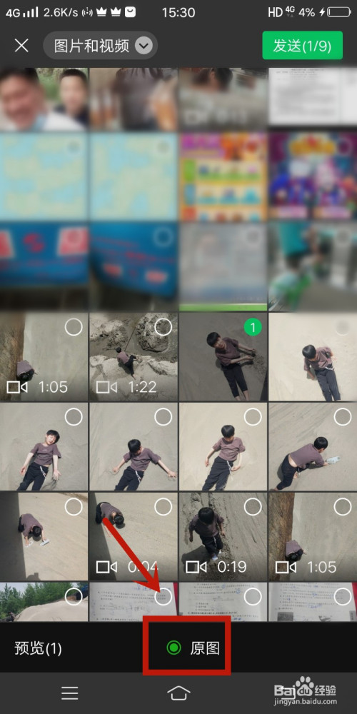 7、点击原图小圆圈,这一步很是主要哦。然后再点击发送;