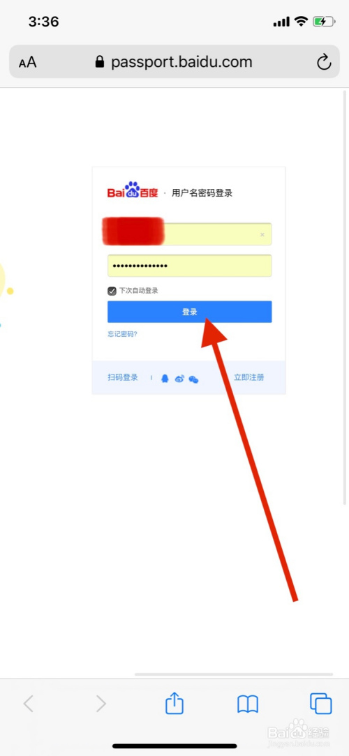 6、页面显示暗码与账户已经主动填充点击登岸就可。