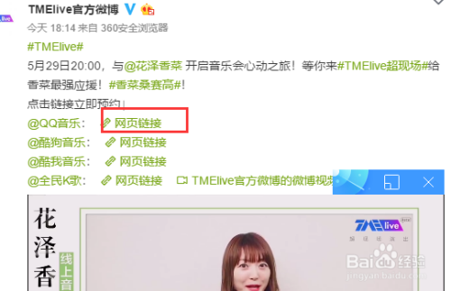 第二:在搜刮成果中点击第一个【TMElive】的官方微博。