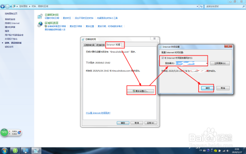 此外在日期和时候对话框还可以点击:Internet时候——点击更改设置——勾选:与Internet时候办事器同步,选择好办事器后点击确定。还可以点击附加时钟进行相关设置。