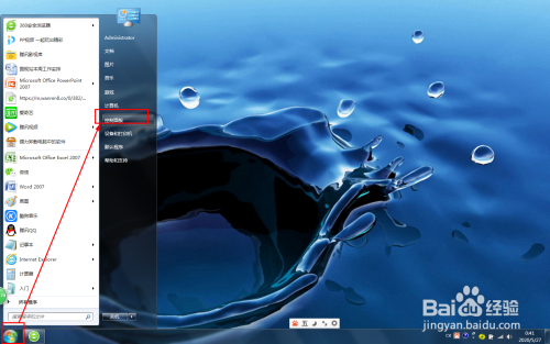 END点击左下角的Win图标——点击选择:节制面板,打开节制面板。